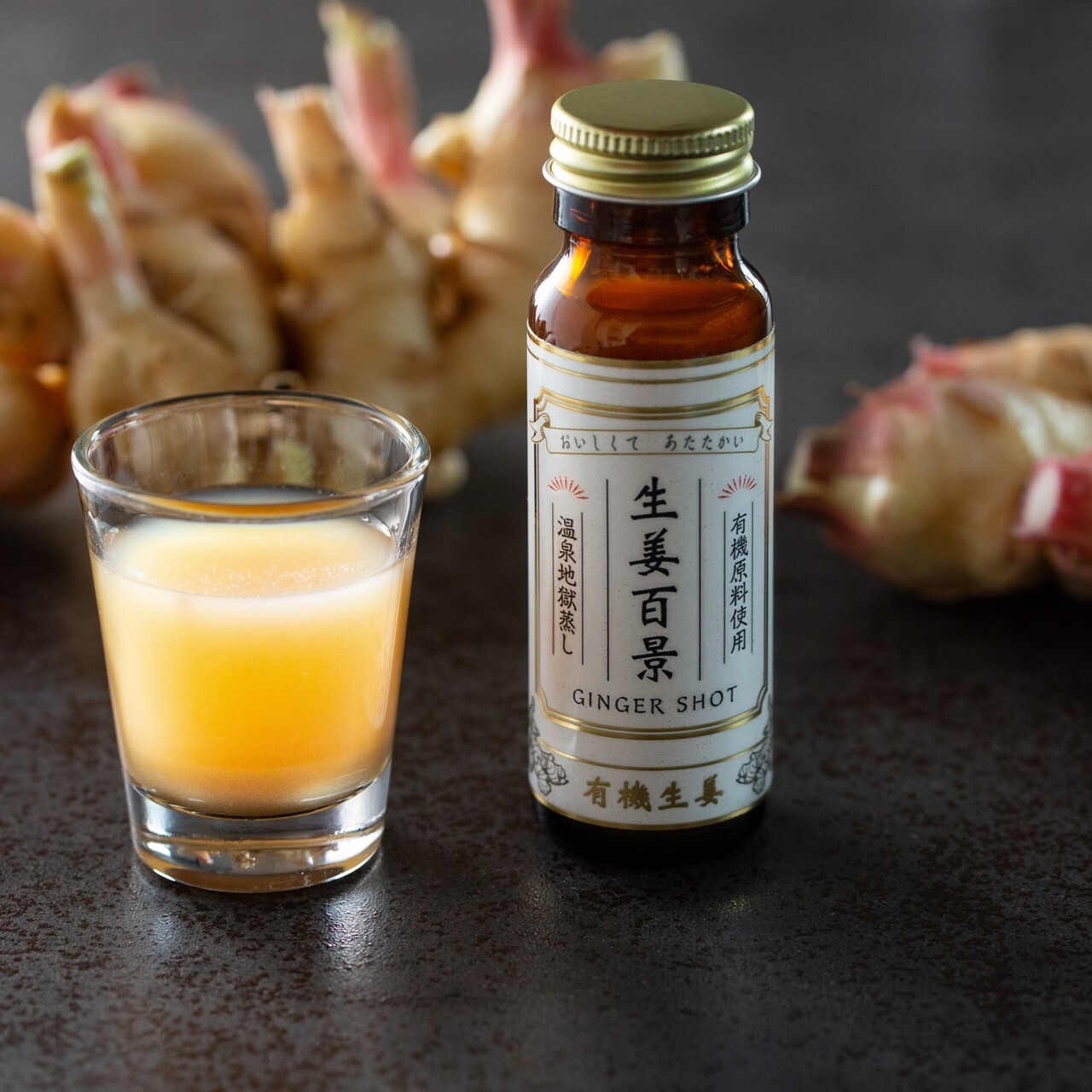 逞しい土壌で育まれた力強い辛みの有機生姜を、ミネラル豊富な温泉の蒸気で24時間じっくり蒸すことでショウガオール成分が126倍まで飛躍的に増加し、尖った辛みが落ち着きマイルドになります。この地獄蒸し生姜を丸ごと摺り下ろして配合し、力強くも飲みやすく仕上げています。