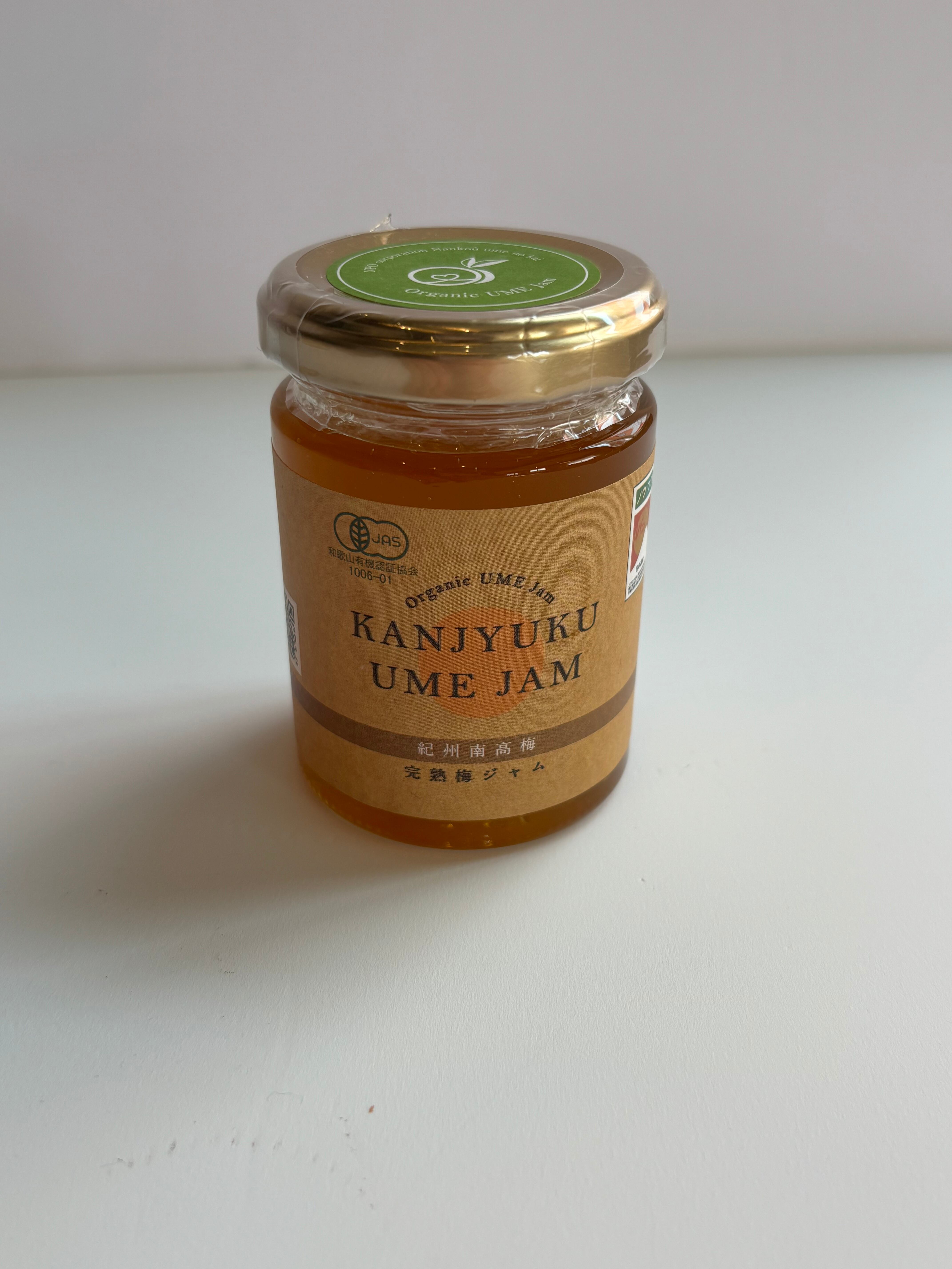 有機栽培の果肉たっぷりな大粒の完熟南高梅だけを使用し、有機てんさい糖で仕上げた完熟梅ジャムは、とてもきれいな透明感のある黄金色になっております。