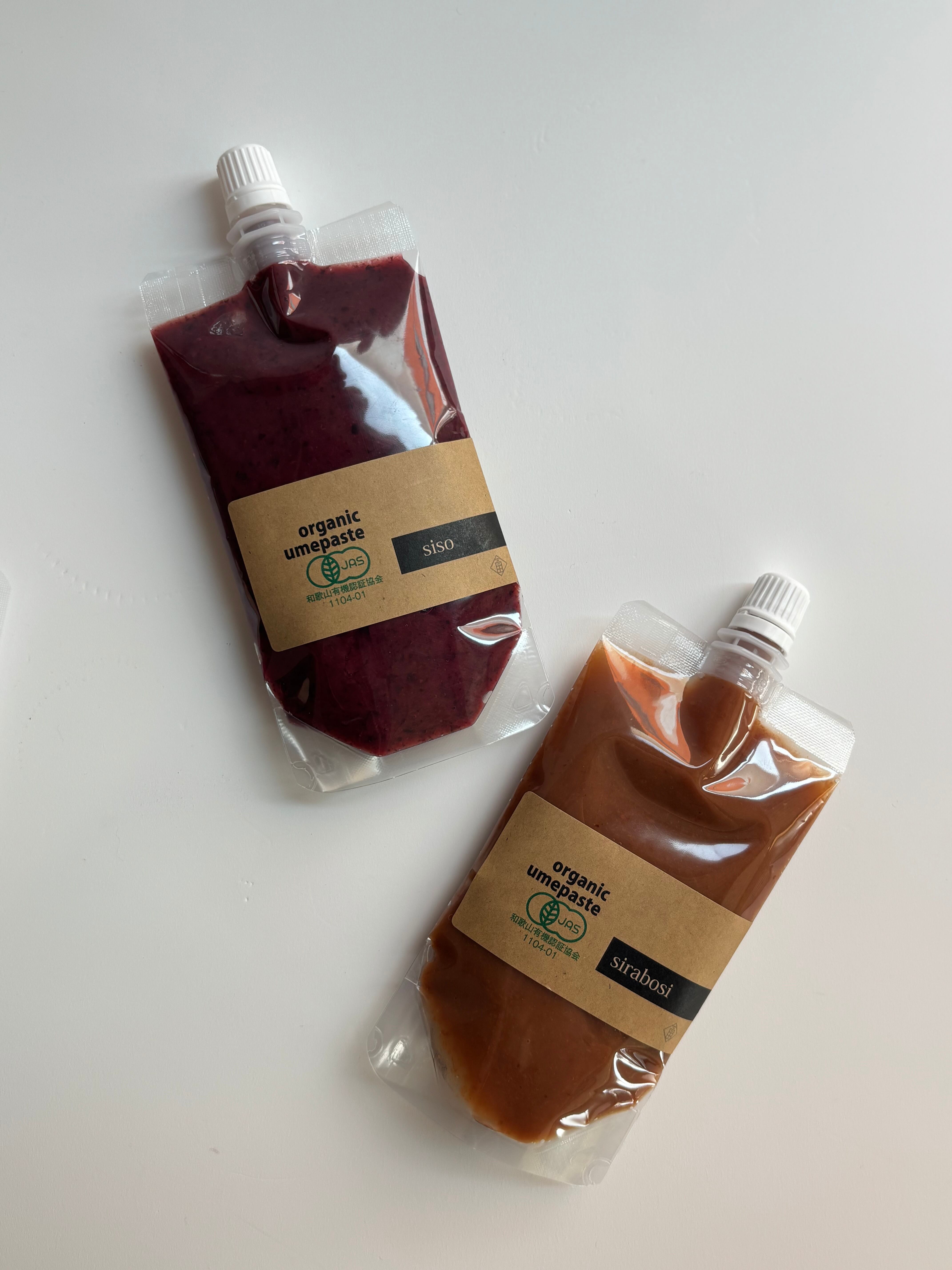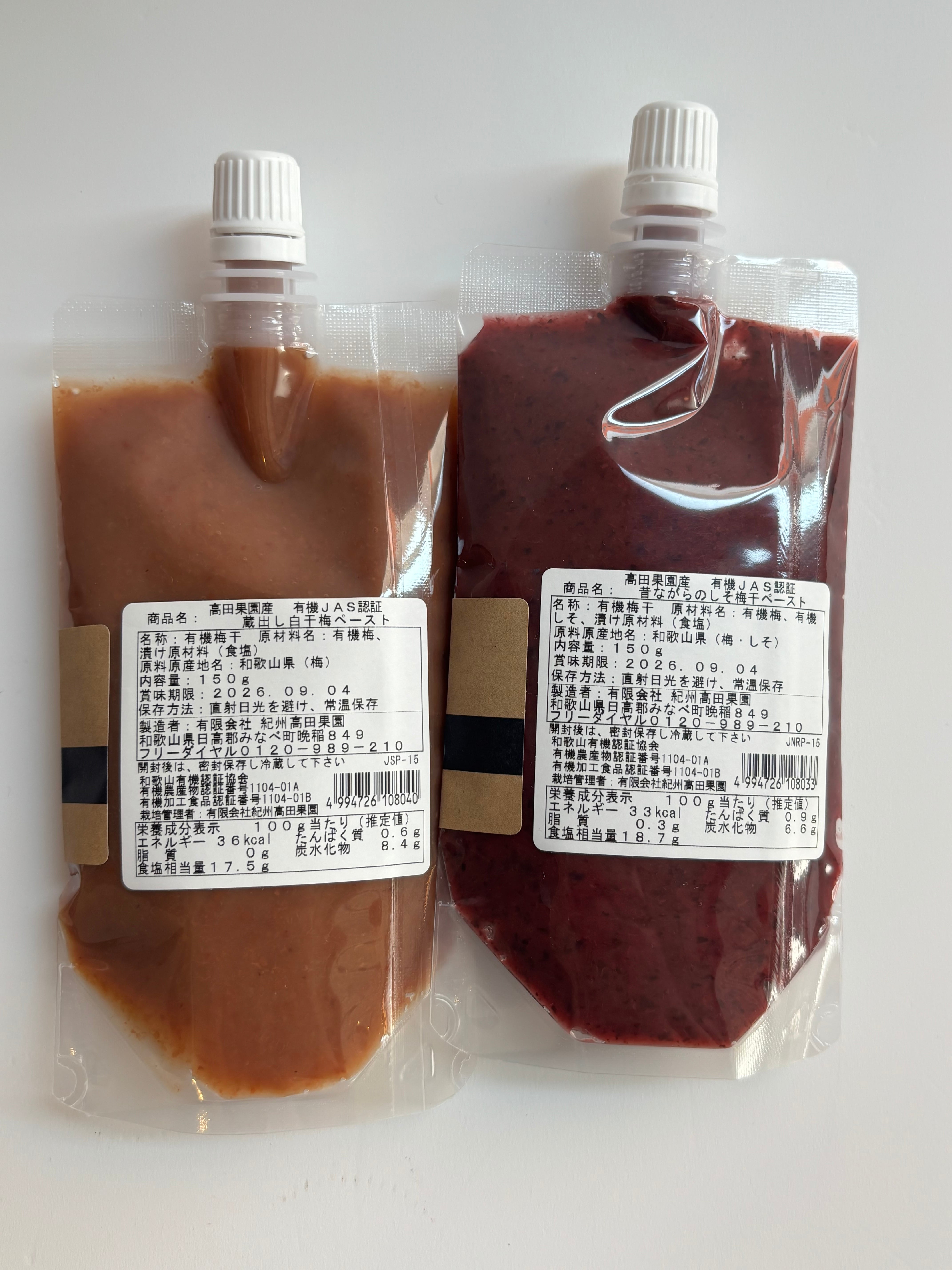 有機JAS認証 蔵出し白干梅と、昔ながらのしそ梅干を使いやすいペースト状にしました。
